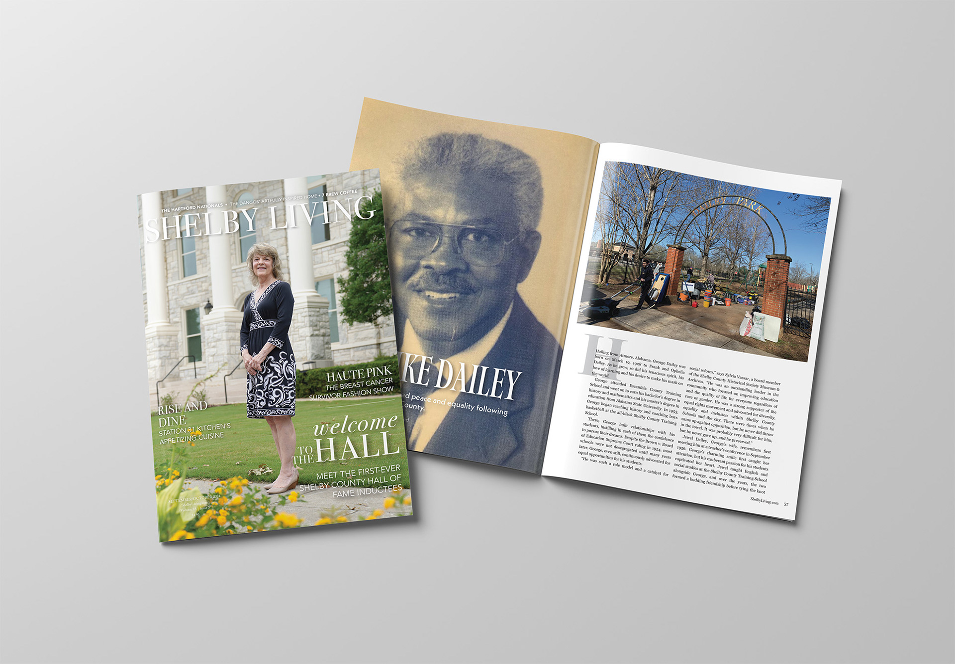 For the fall 2024 issue of Shelby Living, I designed a reusable template for the Shelby County Hall of Fame section. This section highlights influential individuals from around the county.