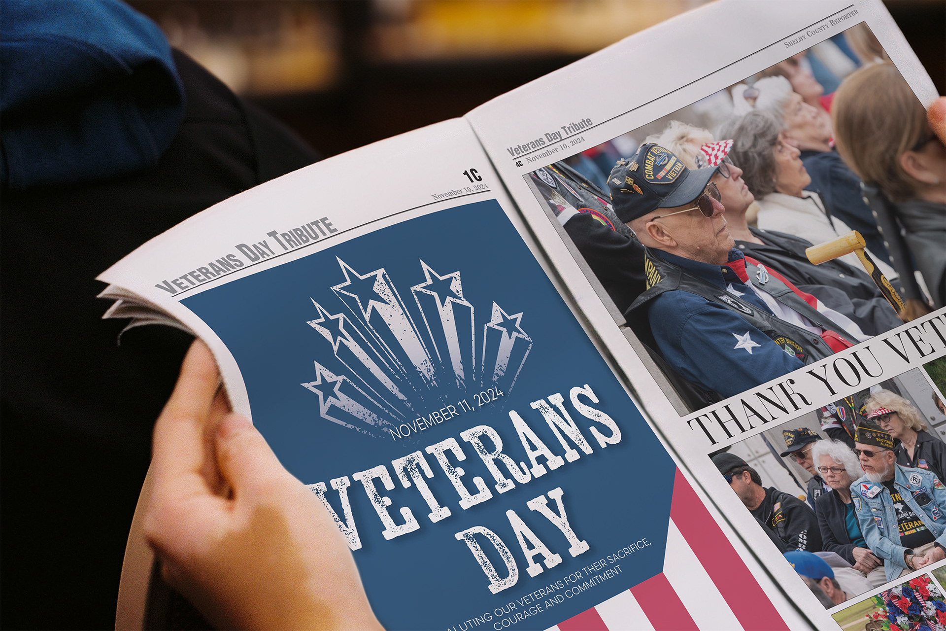 For several years in a row, I have designed a different front cover for the Veteran's Day special section in Shelby County Reporter.